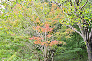 この大きな池から本格的にウォーキングコースが始まります。周辺には、わずかでしたが紅葉やヒガンバナも咲いていて、少しずつ秋が近づいているようでした。